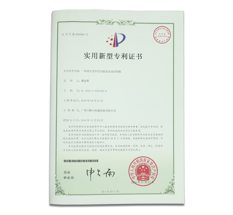 騰卓機(jī)械專(zhuān)利生產(chǎn)證書(shū),專(zhuān)業(yè)制造包裝設(shè)備的生產(chǎn)廠家,全自動(dòng)及半自動(dòng)的洗瓶機(jī),烘干機(jī),灌裝機(jī),旋蓋機(jī),貼標(biāo)機(jī),套標(biāo)機(jī),打碼機(jī)等非標(biāo)定制自動(dòng)化包裝生產(chǎn)線(xiàn)
