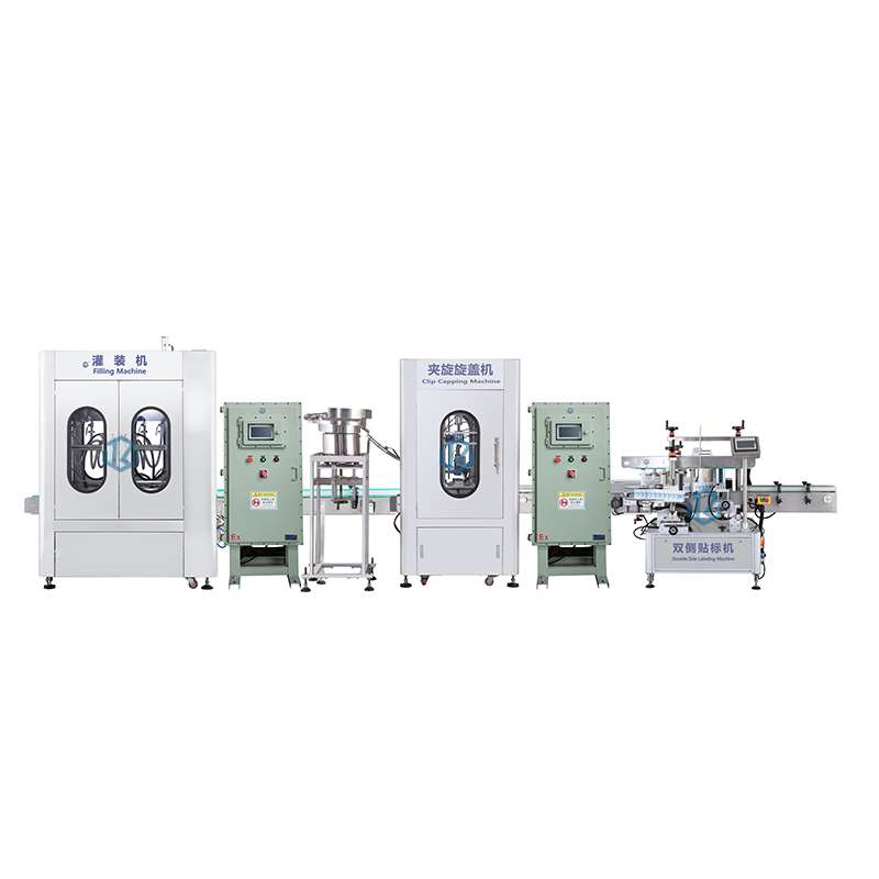 自動灌裝軋蓋機一體機可用于西林瓶、精油瓶、香水瓶全自動灌裝旋蓋及鎖蓋設備。整套流程分為:理瓶-灌裝-壓塞-掛蓋-軋蓋,其特點為生產穩定,對包材通用性強。